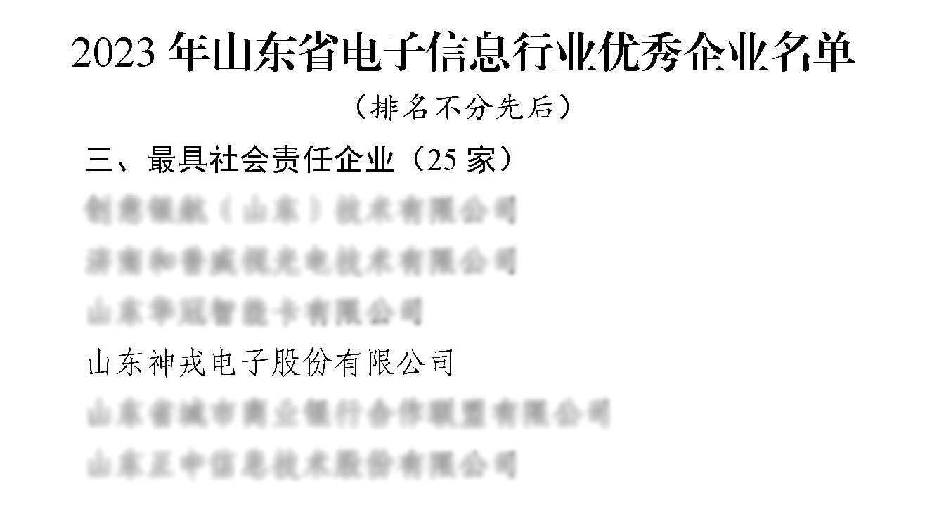 2024年1月19日,2023年度“山東電子信息精英匯——數實融合創新發展大會”在德州市德達養老示范城召開,大會以“數智精英薈天衢,共鑄新質生產力”為主題,探索數實融合發展新路徑,塑強信息技術產業高質量發展新引擎,加速形成新質生產力,會上山東省信息產業協會、山東電子學會公布了《2023年度山東省電子信息行業優秀企業及優秀企業家名單》,山東神戎電子股份有限公司榮獲2023年山東省電子信息行業最具社會責任企業優秀企業稱號。