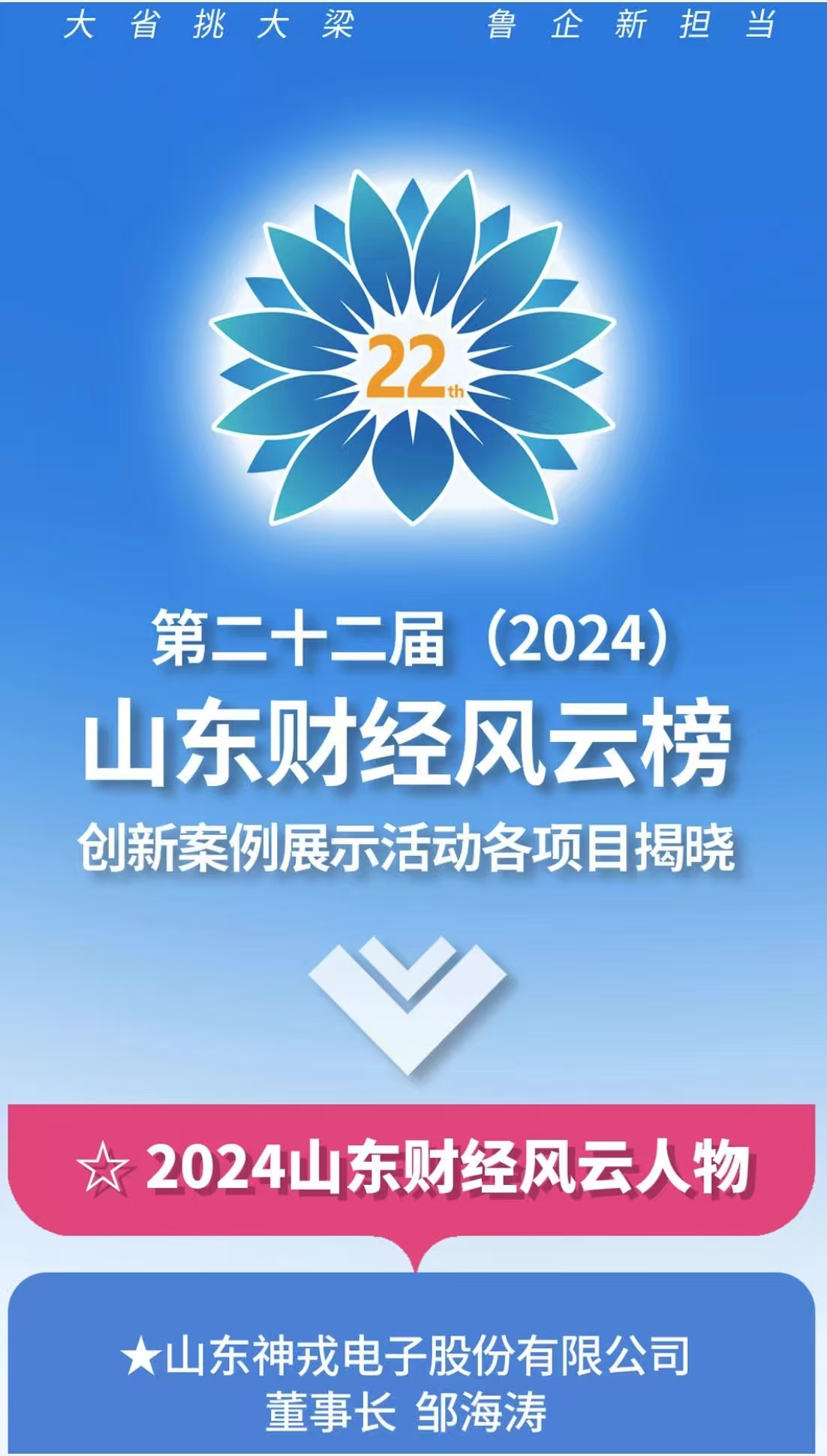鄒海濤董事長(zhǎng)榮獲“第二十二屆(2024)山東財(cái)經(jīng)風(fēng)云人物”